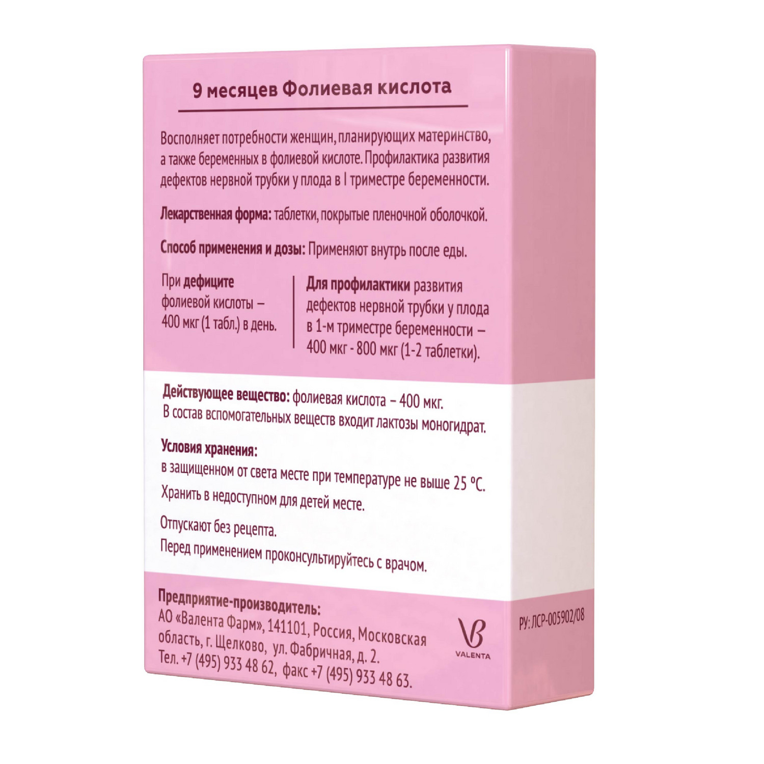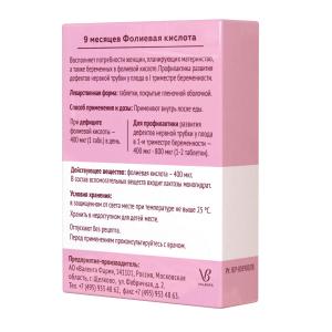 9 месяцев Фолиевая кислота таблетки покрытые пленочной оболочкой 400мкг №30