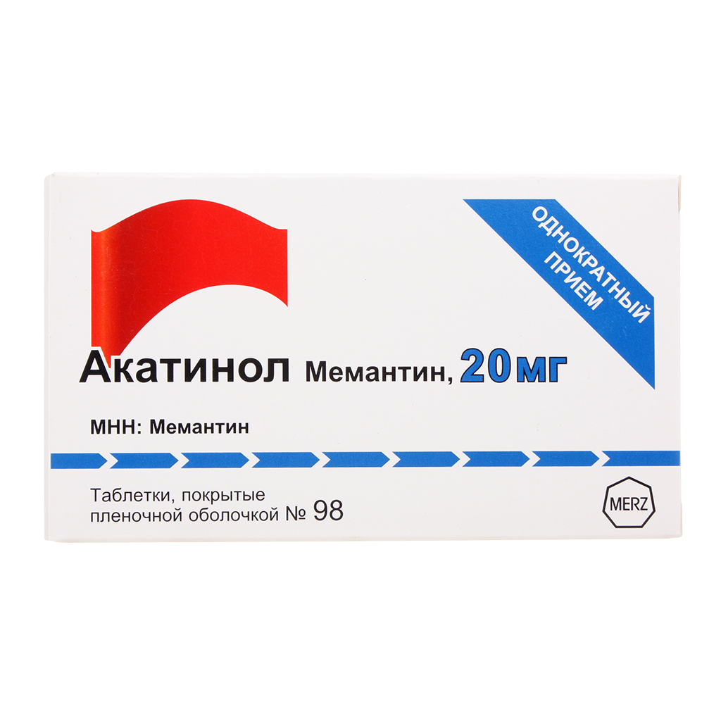 Акатинол Мемантин таблетки покрытые плёночной оболочкой 20мг №98