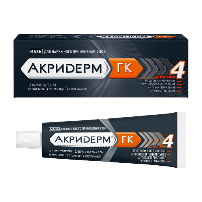 Акридерм ГК мазь для наружного применения 0.05%+0.1%+1% туба 30г