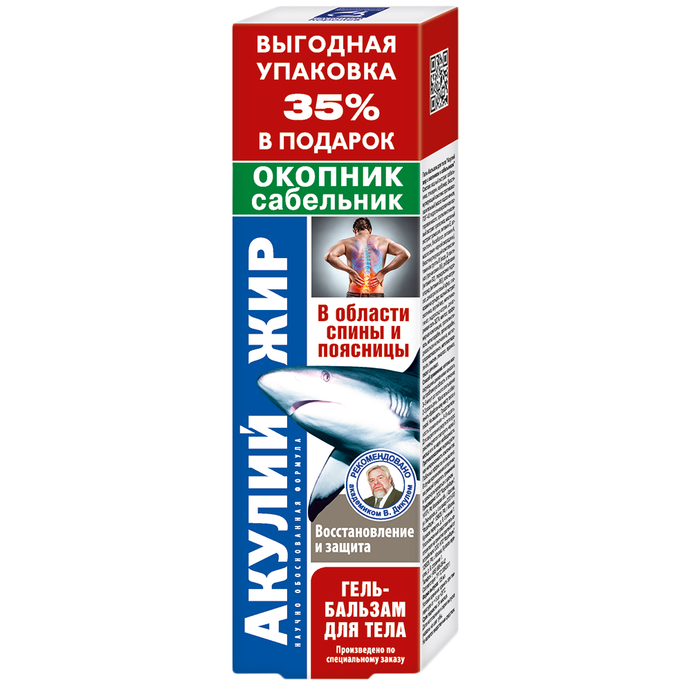 Акулий жир с окопником и сабельником гель-бальзам для тела в области спины и поясницы 125мл