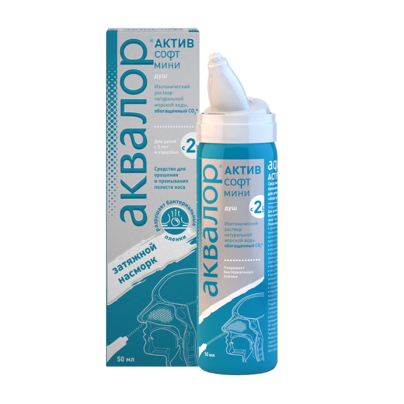 Средство для орошения и промывания полости носа для детей и взрослых «Аквалор® Актив софт мини» 50 мл.