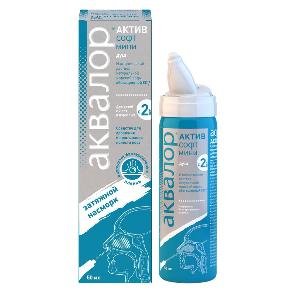 Купить Аквалор актив софт мини средство для орошения и промывания полости носа для детей и взрослых 50мл по низкой цене