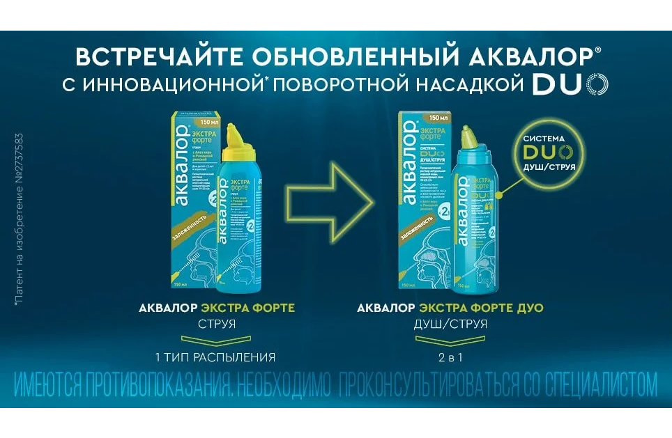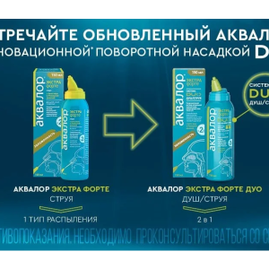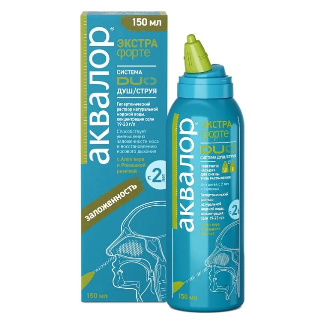 | Описание устройства изделия | Средство для орошения и промывания полости носа для детей и взрослых «Аквалор® экстра форте с Алоэ вера и Ромашкой римской» 150 мл по ТУ 32.50.50-011-00480081-2017 (далее по тексту средство) представляет собой аэрозоль в алюминиевом баллоне под давлением с: полиэтиленовой анатомической насадкой для носа, создающей распыление «струя», с ограничительным кольцом и с полипропиленовым колпачком или полиэтиленовой поворотной анатомической насадкой для носа, создающей распыление «душ / струя», с ограничительным кольцом и с полипропиленовым колпачком. Инновационная поворотная насадка позволяет выбрать требуемый тип распыления «душ» или «струя». Внутрь баллона помещен четырехслойный пакет с содержимым, снабженный специальным односторонним клапаном. Насадка имеет перемычку для контроля нажатия на аэрозольный клапан. Не является лекарственным средством. |