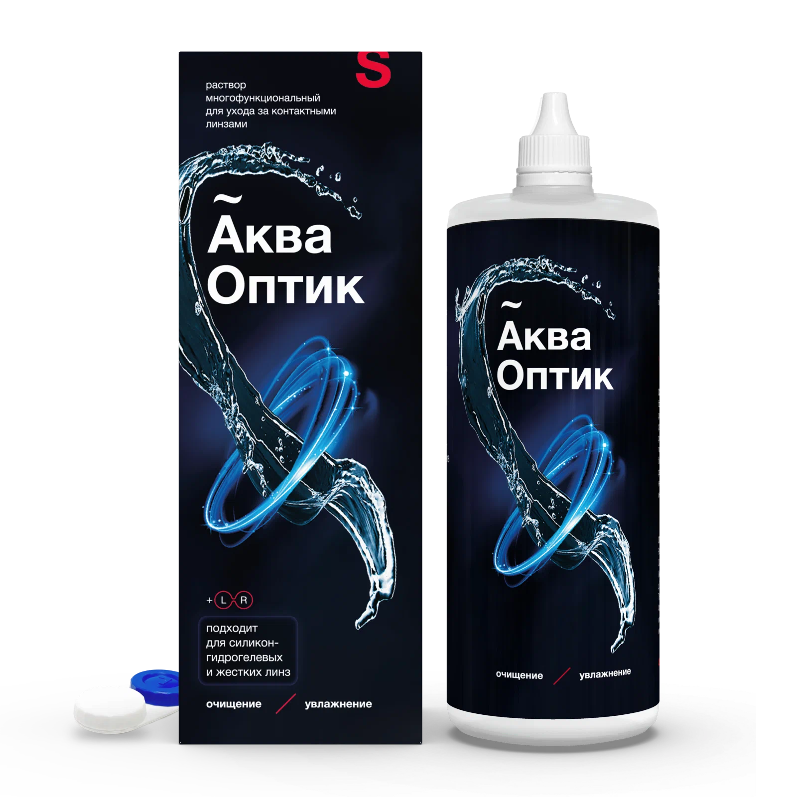 Раствор многофункциональный для ухода за контактными линзами АкваОптик (далее - раствор) представляет собой прозрачный или слегка опалесцирующий бесцветный раствор.