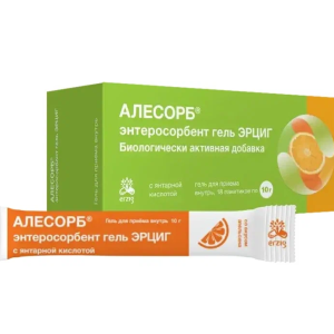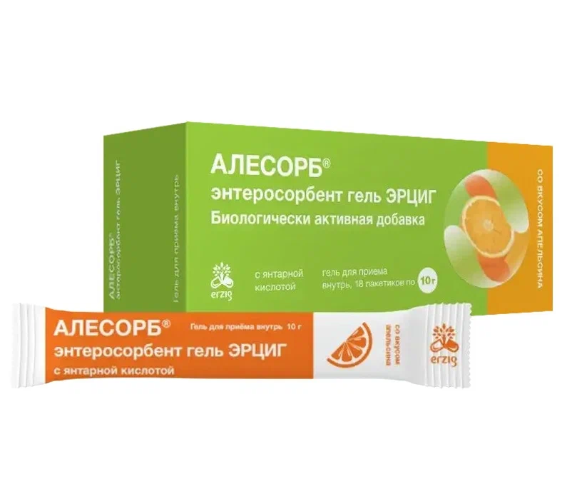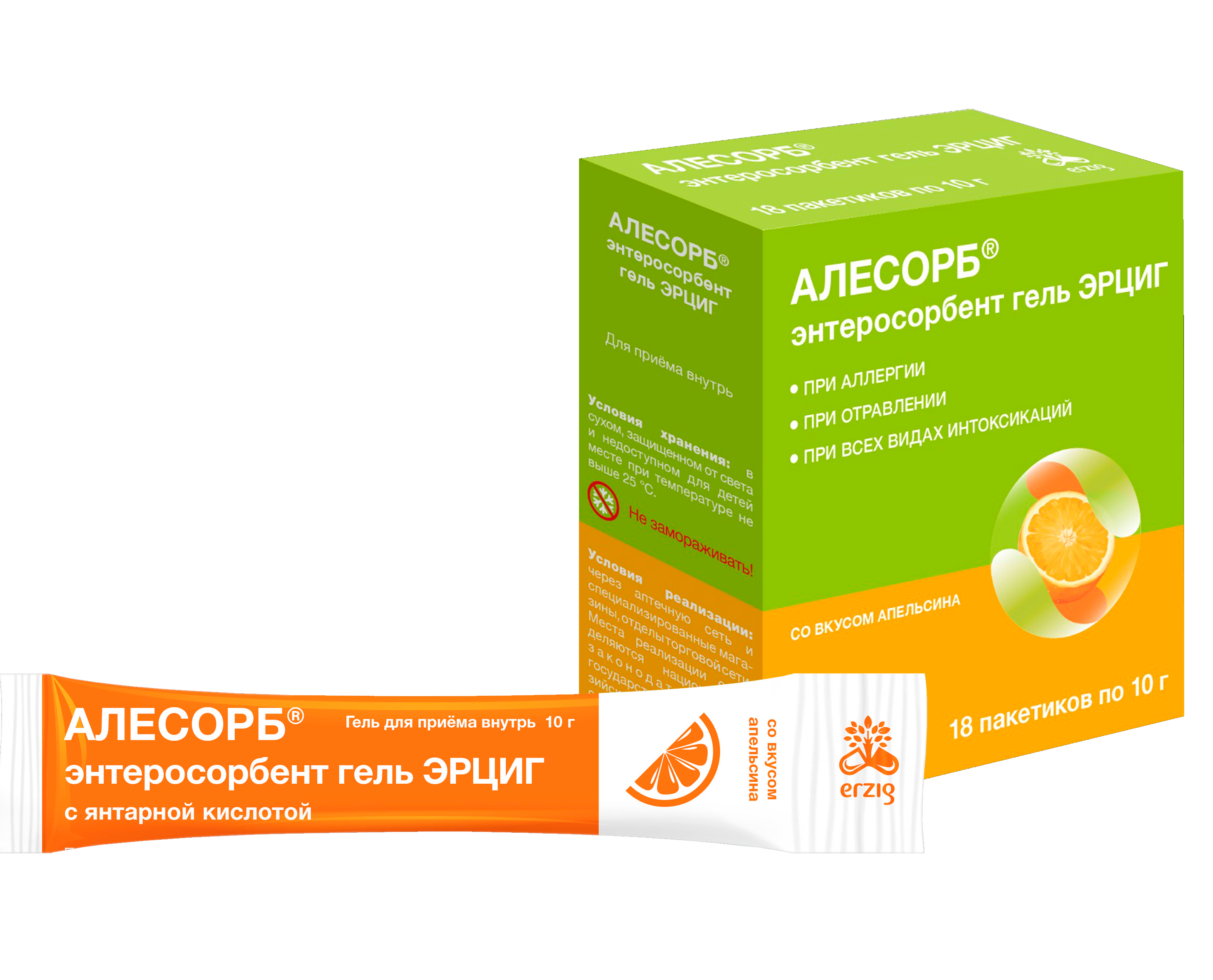 Алесорб энтеросорбент гель Эрциг гель для приема внутрь со вкусом апельсина пакетики 10г №18