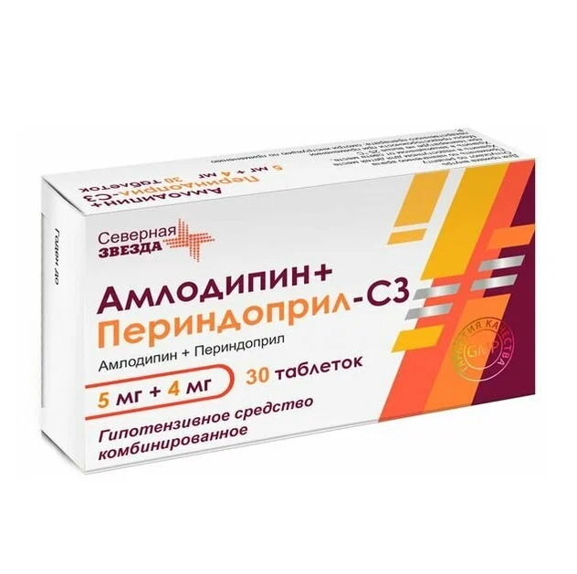 Купить Амлодипин+Периндоприл-СЗ таблетки 5мг+4мг №30 по низкой цене