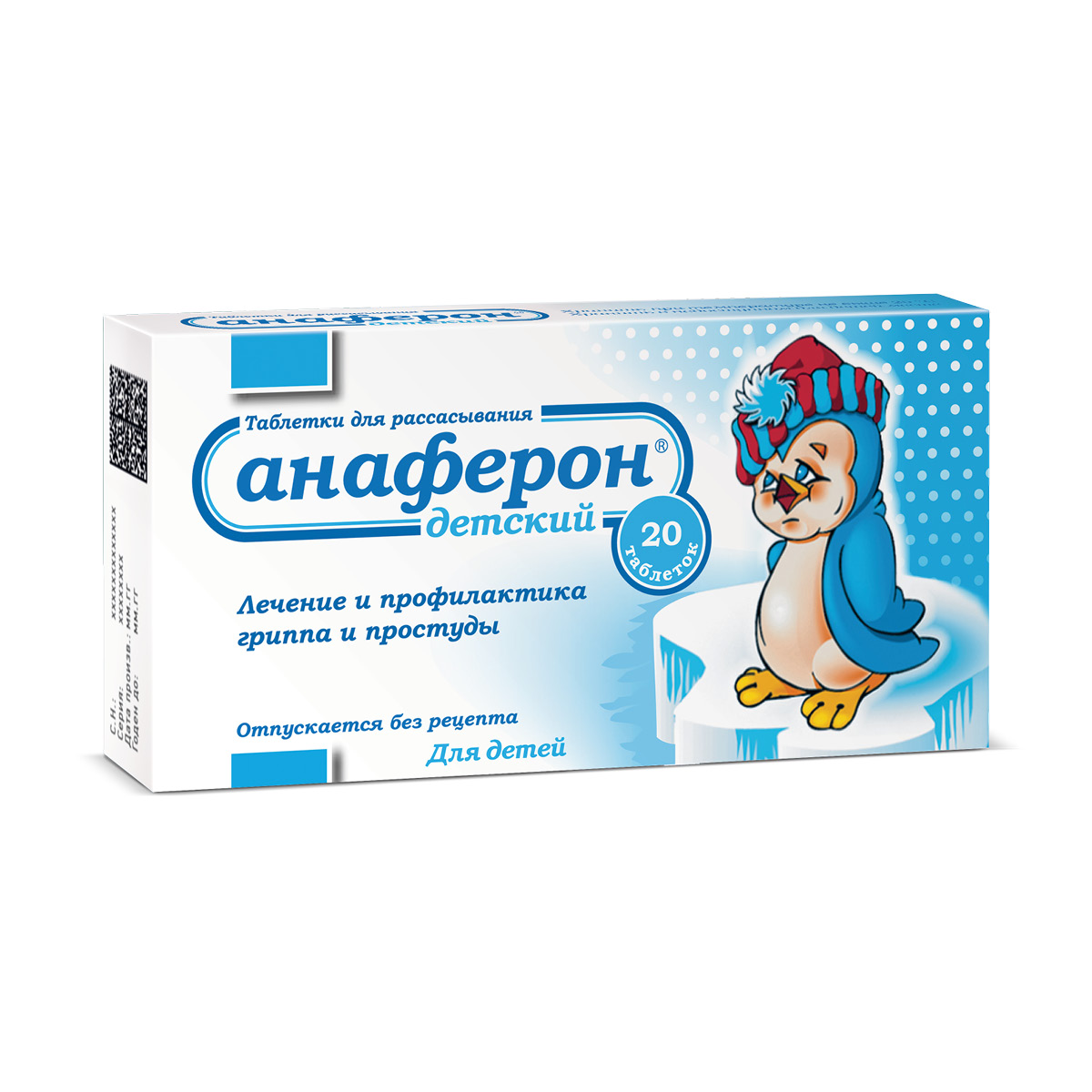 Таблетки плоскоцилиндрической формы, с риской и фаской, от белого до почти белого цвета. На плоской стороне с риской нанесена надпись MATERIA MEDICA, на другой плоской стороне нанесена надпись ANAFERON КID.