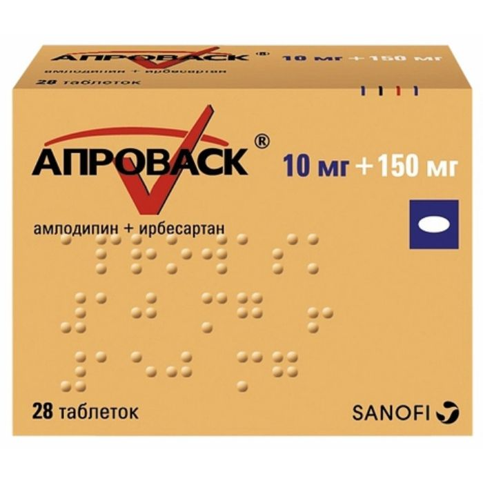 Фармакодинамические свойства каждого из активных веществ, входящих в состав препарата Апроваск®, ирбесартана и амлодипина, способствуют их аддитивному антигипертензивному действию при применении в комбинации по сравнению таковым при применении каждого этих препаратов в отдельности. Как антагонисты рецепторов ангиотензина II (АРА11), так и блокаторы «медленных» кальциевых каналов, снижают артериальное давление (АД) за счёт снижения периферического сопротивления сосудов, блокада поступления кальция в клетку и уменьшение обусловленного воздействием ангиотензина II сосудосуживающего действия являются дополняющими друг друга механизмами.