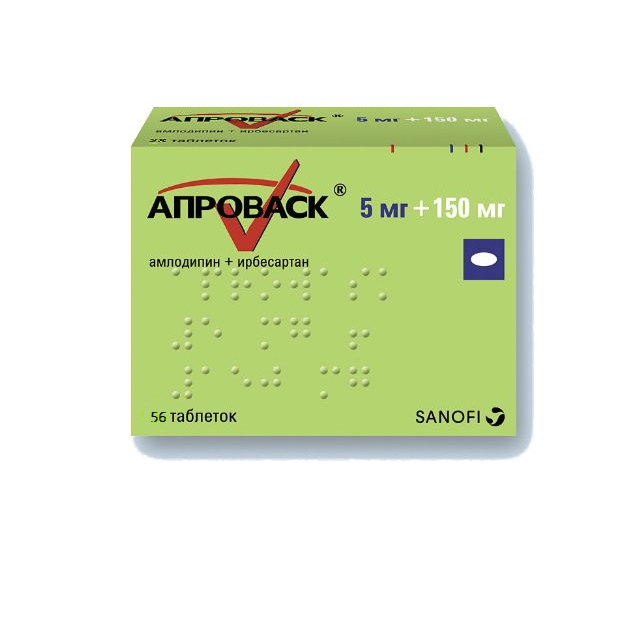 Фармакодинамические свойства каждого из активных веществ, входящих в состав препарата Апроваск®, ирбесартана и амлодипина, способствуют их аддитивному антигипертензивному действию при применении в комбинации по сравнению таковым при применении каждого этих препаратов в отдельности. Как антагонисты рецепторов ангиотензина II (АРА11), так и блокаторы «медленных» кальциевых каналов, снижают артериальное давление (АД) за счёт снижения периферического сопротивления сосудов, блокада поступления кальция в клетку и уменьшение обусловленного воздействием ангиотензина II сосудосуживающего действия являются дополняющими друг друга механизмами.