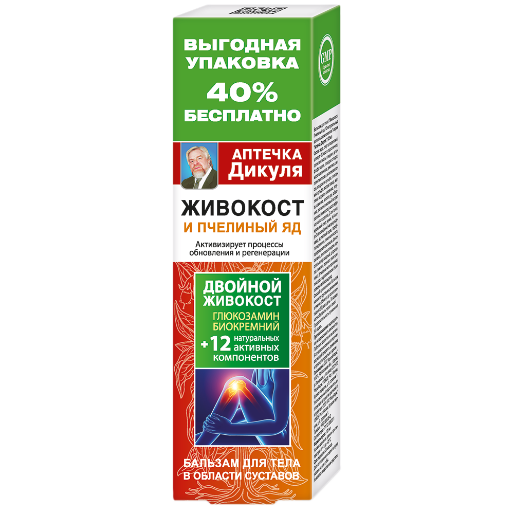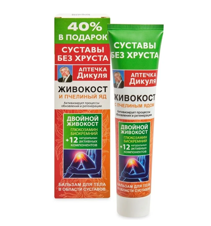 Аптечка Дикуля Живокост и пчелиный яд бальзам для тела в области суставов туба 125мл