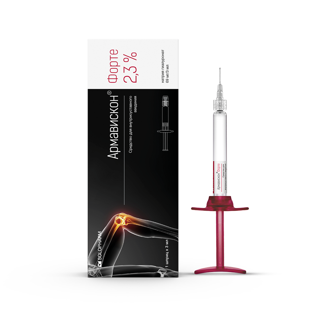 Средство Армавискон® Форте является протезом синовиальной жидкости сустава в преднаполненных шприцах. Применяется на фоне дегенеративных изменений поверхности синовиального хряща для улучшения подвижности суставов, уменьшения болевого синдрома, снижения воспалительных реакций и восстановления гомеостаза в хряще.