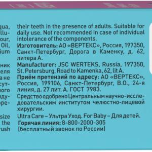 - Комплексный состав позволяет одновременно ухаживать за дёснами и зубами.