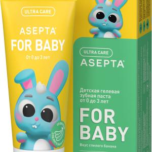 - Зубная паста для самых маленьких должна быть не только вкусной, но и полезной. ASEPTA BABY со вкусом спелого банана — это зубная паста, разработанная специально для деликатной гигиены полости рта у детей от 0 до 3 лет. Гелевая текстура оптимально подходит для бережного и эффективного очищения первых зубов и дёсен малыша. Паста не содержит фторидов, в состав не входят агрессивные компоненты, поэтому средство безопасно при случайном проглатывании во время чистки зубов.