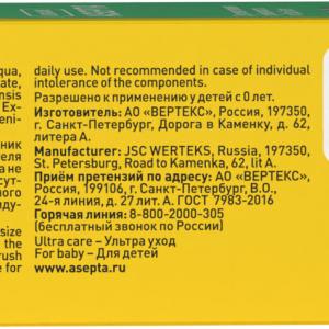 - Зубная паста ASEPTA Baby произведена фармацевтической компанией с соблюдением международных стандартов качества.