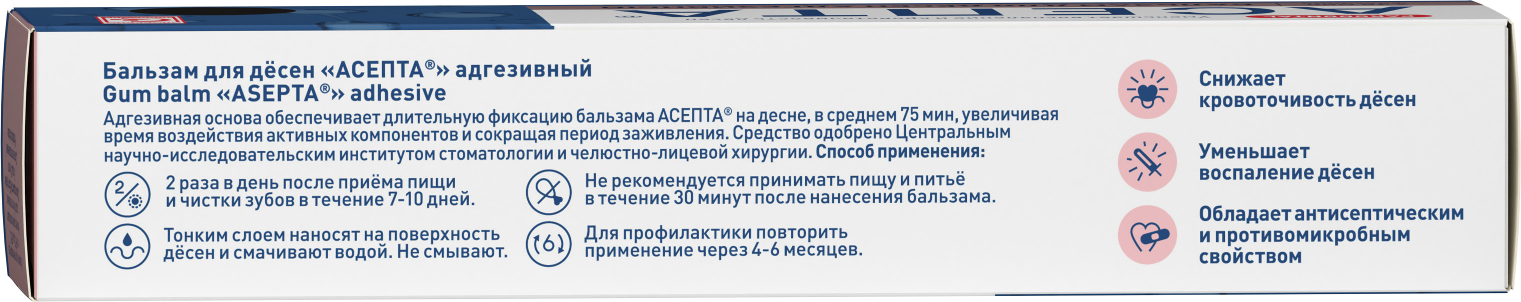 Бальзам для дёсен «АСЕПТА» — комбинированное средство, предназначенное для применения при инфекционно-воспалительных заболеваниях полости рта.