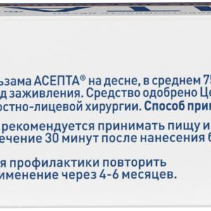 - Для профилактики обострений хронического гингивита и пародонтита бальзам «АСЕПТА®» применяют 2 раза в день в течение 7-10 дней.