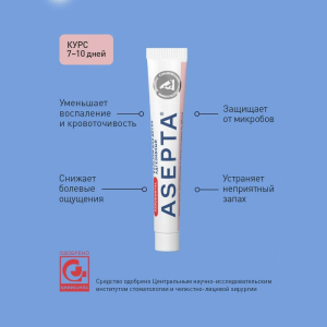 - АСЕПТА® ACTIVE профилактическая зубная паста для бережной гигиены полости рта при воспалительных процессах слизистой оболочки полости рта.