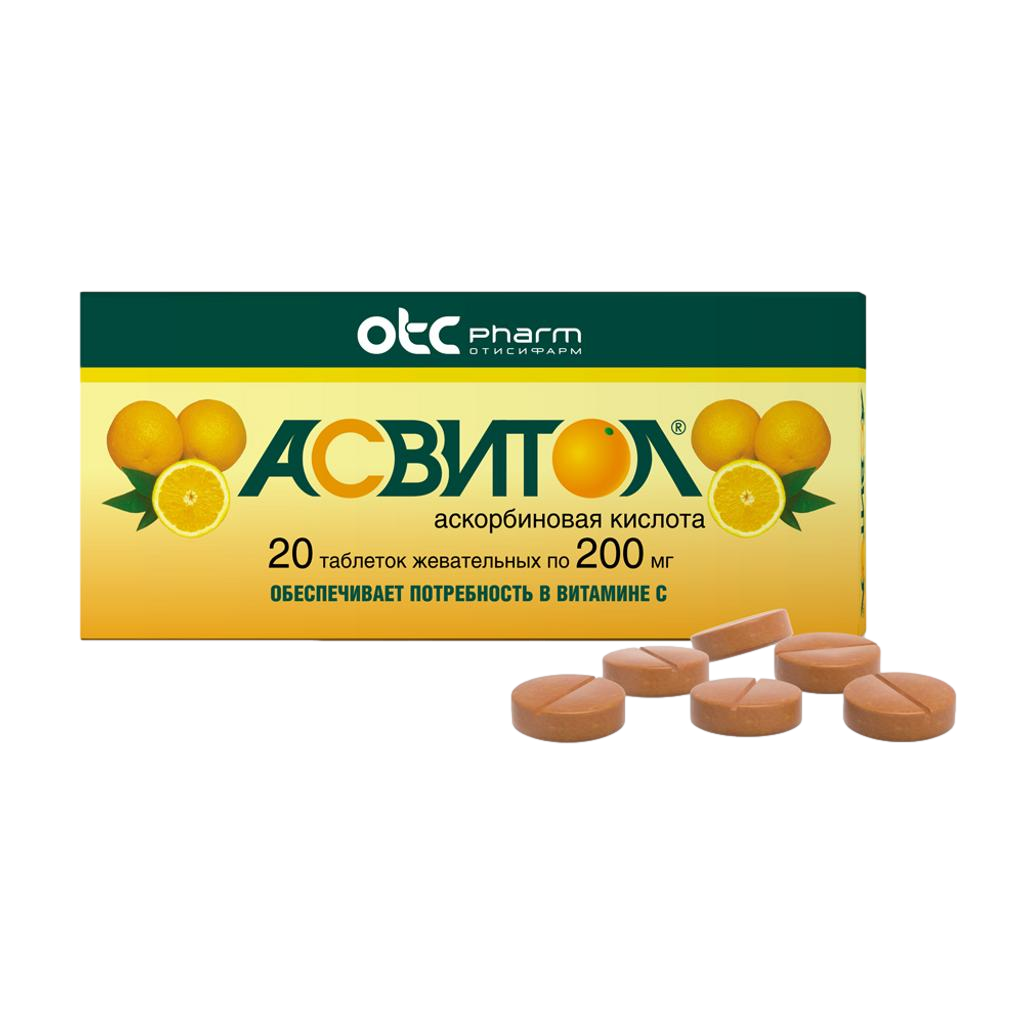 Асвитол таблетки жевательные 200мг №20