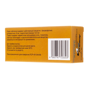 Активные вещества: ;кандесартана цилексетил ;16 ;мг и ;гидрохлоротиазид ;12,5 ;мг.