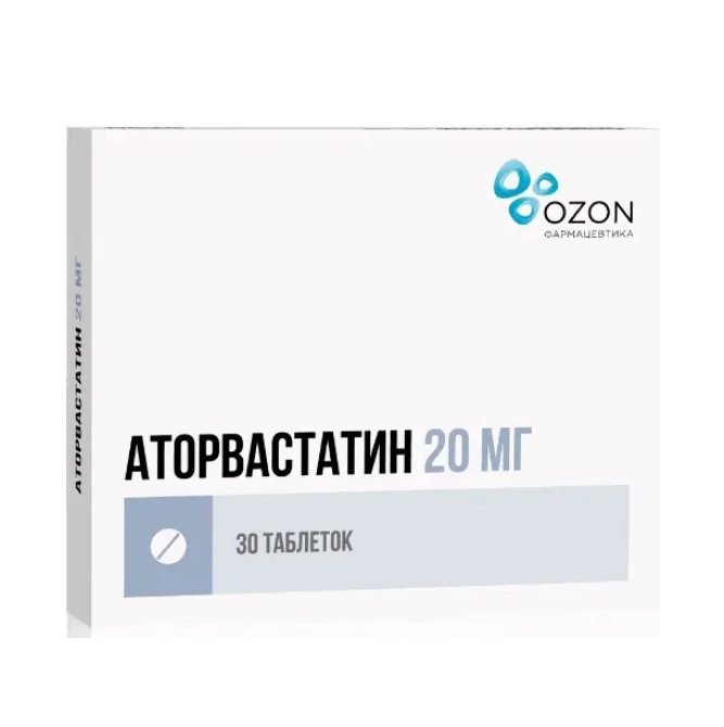 Аторвастатин таблетки покрытые плёночной оболочкой 20мг №30