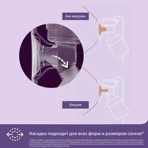 Технология Natural Motion совмещает деликатную стимуляцию соска и сцеживание, как это делает малыш. Расслабьтесь и займите удобное сидячее положение при сцеживании - благодаря специальной конструкции насадки молокоотсос позволяет сидеть ровно, не наклоняясь вперед.