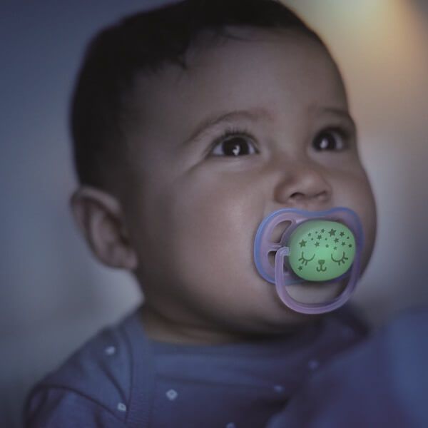 Легко находите пустышку ultra air night благодаря светящейся в темноте кнопке без необходимости включать свет.