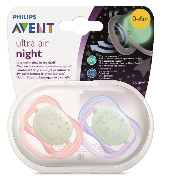 Авент ultra air night пустышка силиконовая для девочек 0-6месяцев SCF376/12 с футляром №2