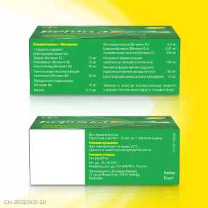 Комбинированный препарат, фармакологическое действие которого обусловлено входящими в его состав комплексом витаминов и микроэлементов.