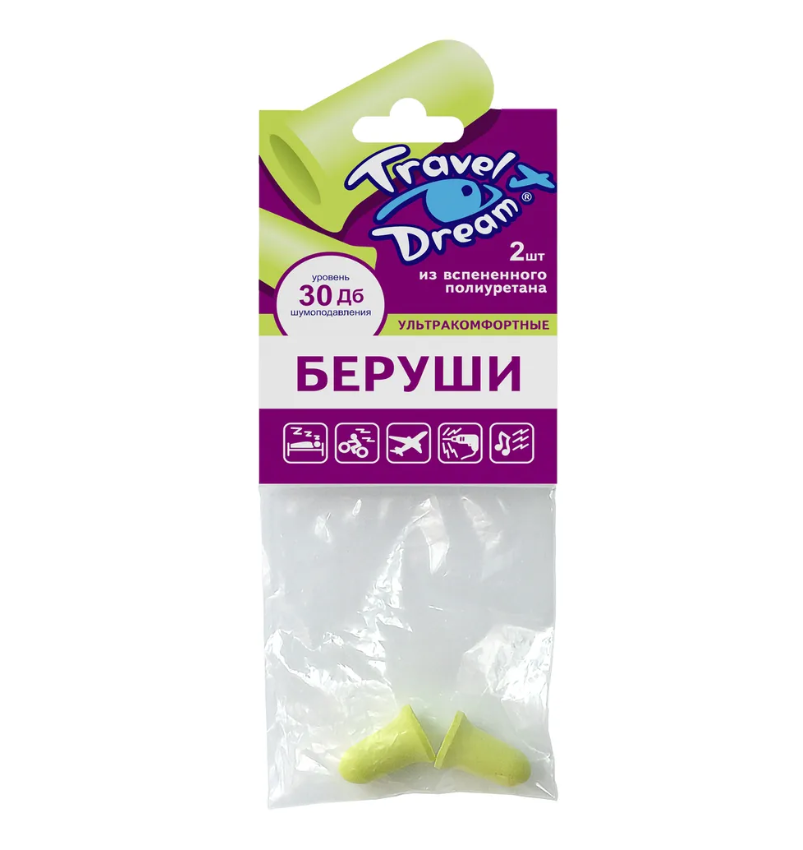 Беруши Трэвел Дрим пенопропиленовые предназначены для защиты органов слуха от транспортных, бытовых, производственных шумов и загрязнений. Вспененный полипропилен обеспечивает максимально комфортную посадку, а их коническая эргономичная форма легко помещается в слуховом проходе, не оказывая давление на его стенки.