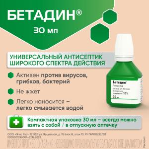 Бетадин раствор для местного и наружного применения 10% 30мл
