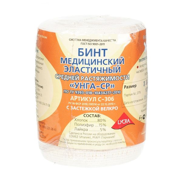 Бинт медицинский эластичный средней растяжимости Еxtraplus Унга-СР 10х500см артикул С-306 с застежкой велкро