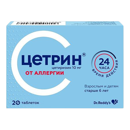 Активное вещество: цетиризина дигидрохлорид, 10 мг