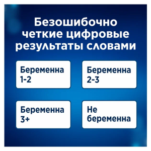 - Показывает, беременны ли вы, и количество недель после зачатия: 1–2, 2–3 недели или более 3 недель