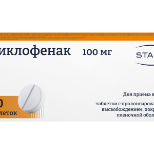 Диклофенак таблетки пролонгированного действия покрытые пленочной оболочкой 100 мг №20