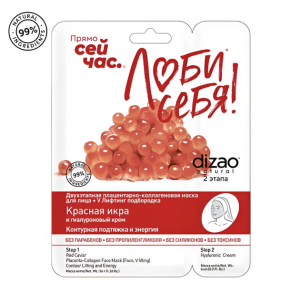 Dizao двухэтапная плацентарно-коллагеновая маска для лица + V лифтинг подбородка Красная икра №10