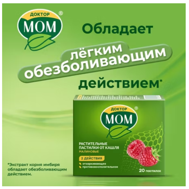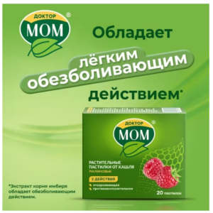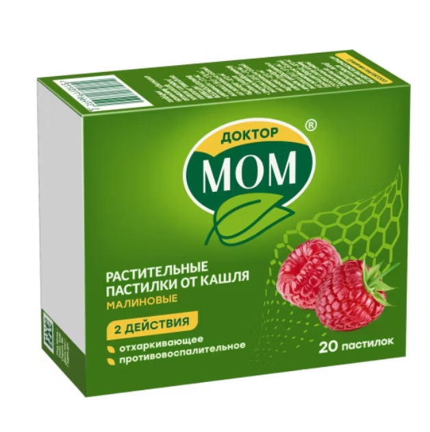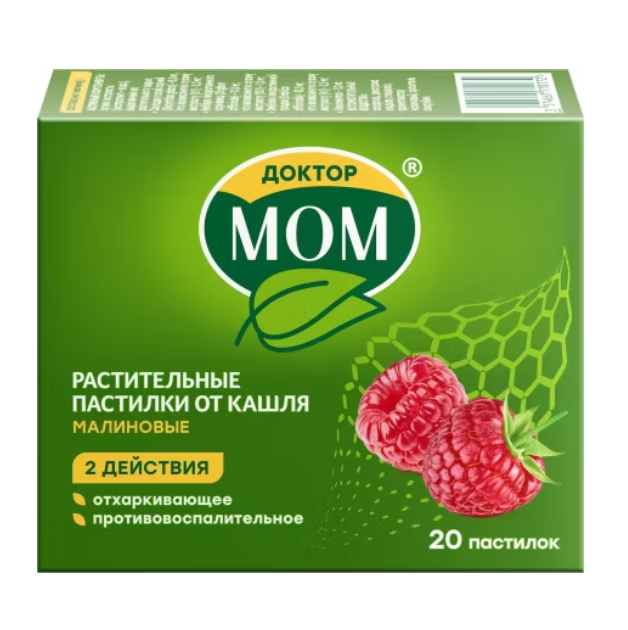 Доктор Мом растительные пастилки от кашля малиновые №20