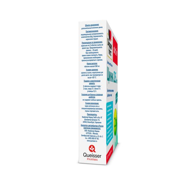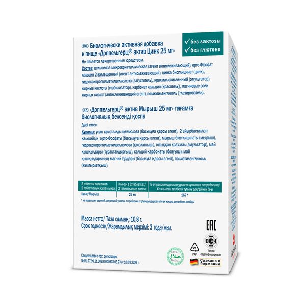 Доппельгерц актив Цинк 25мг таблетки массой 360мг №30
