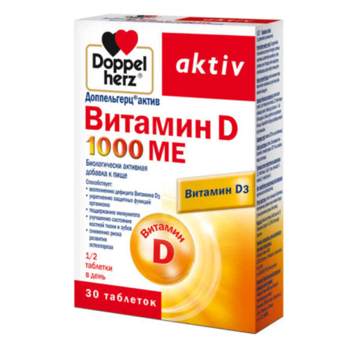 Доппельгерц актив Витамин D3 1000МЕ таблетки массой 278мг №30