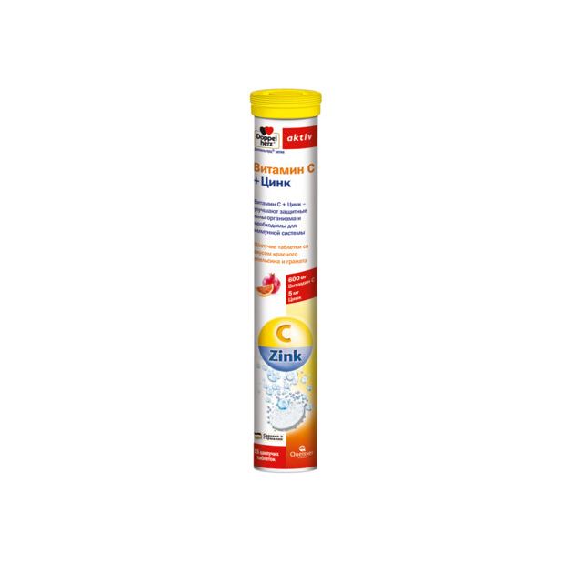 Доппельгерц актив Витамин С + Цинк таблетки шипучие со вкусом красного апельсина и граната массой 6300мг №15