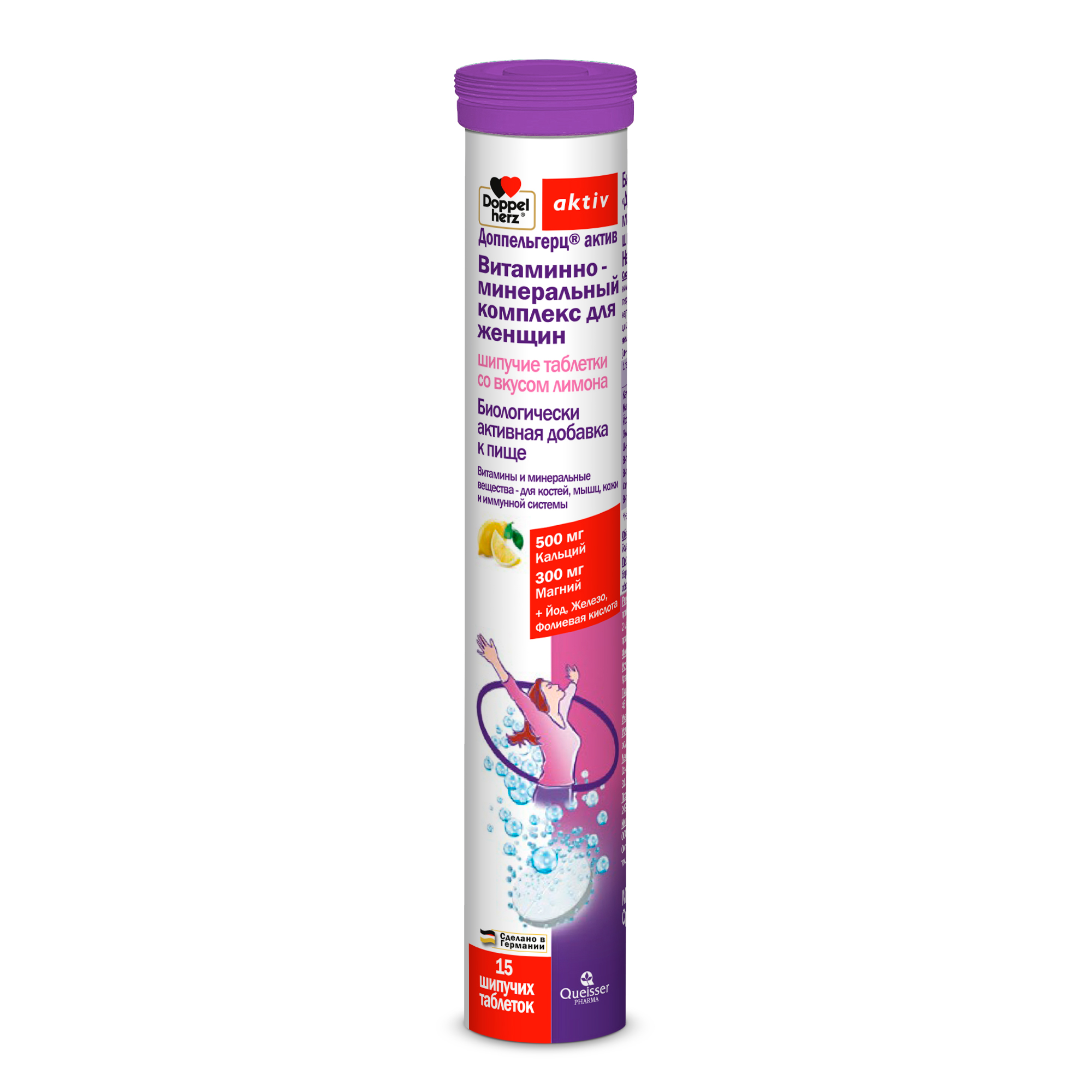 Доппельгерц актив Витаминно-минеральный комплекс для женщин таблетки шипучие со вкусом лимона массой 6,7г №15