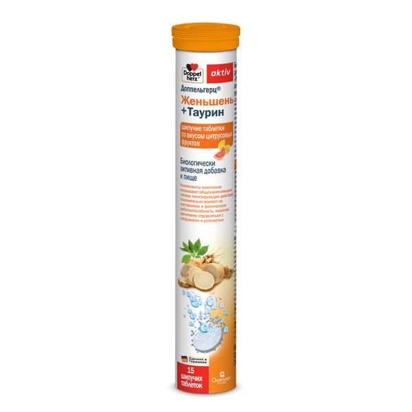 Доппельгерц актив Женьшень + Таурин таблетки шипучие со вкусом цитрусовых фруктов массой 6,5г №15
