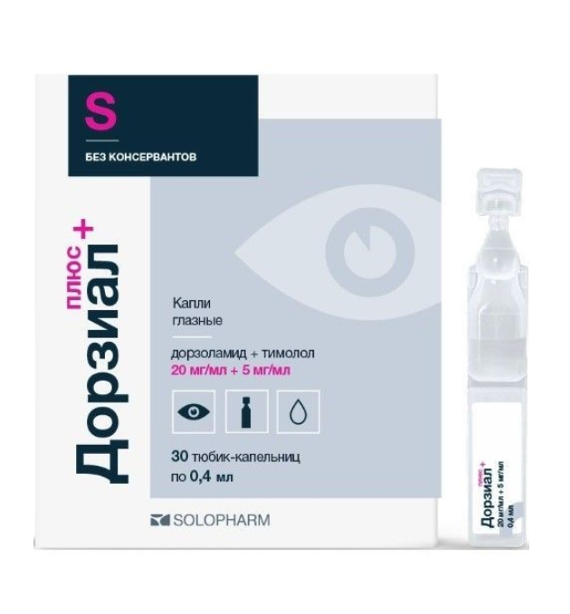 Дорзиал плюс капли глазные 20мг/мл+5мг/мл тюбик-капельница 0,4мл №30