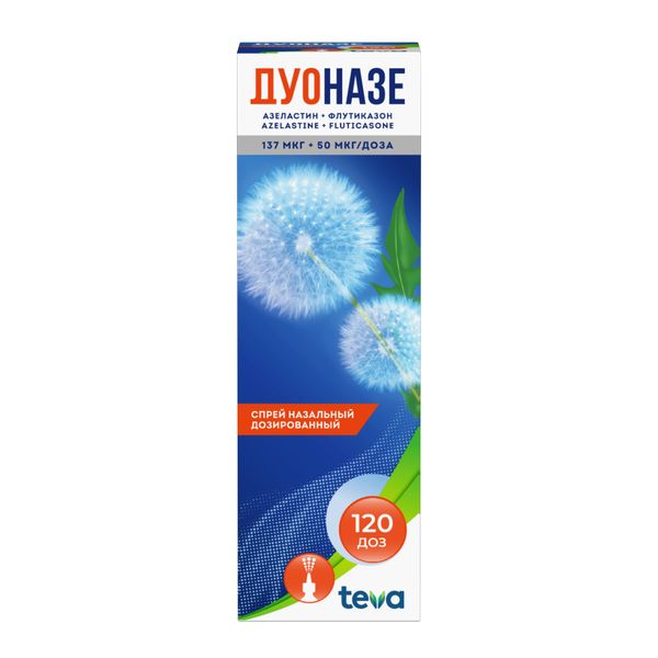 Препарат Дуоназе содержит действующие вещества азеластин и флутиказон. Препарат Дуоназе относится к группе препаратов для лечения заболеваний носа.
