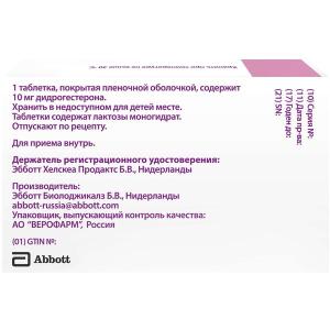 активное вещество: дидрогестерон 10 мг.