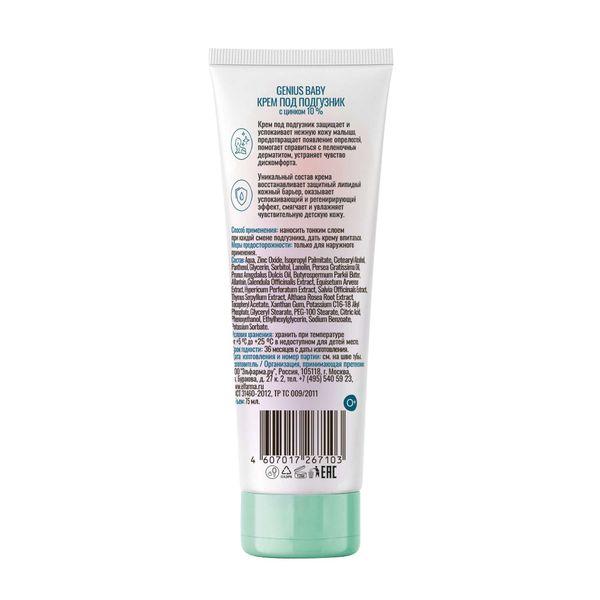Джениус Бэби крем под подгузник 0+ туба 75мл