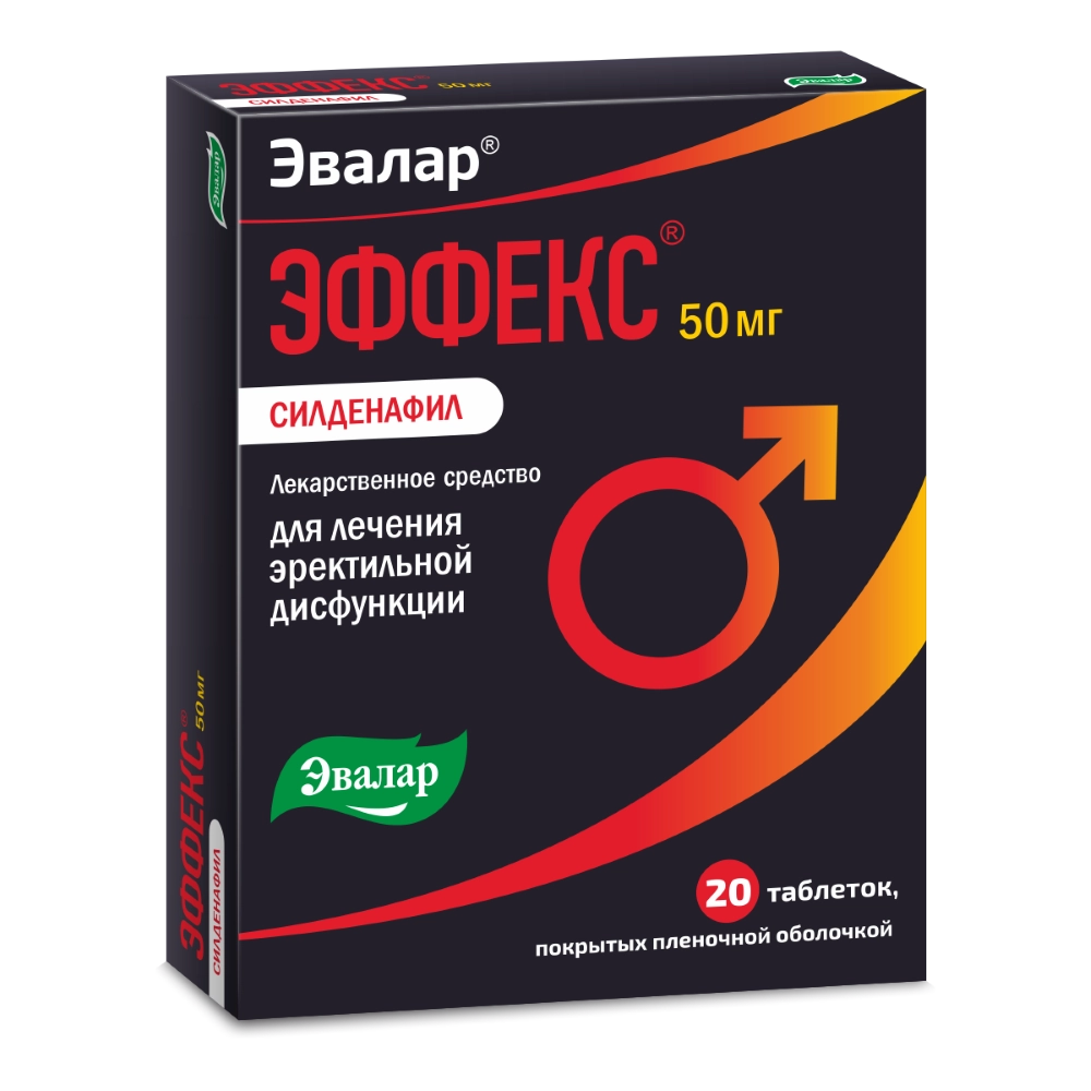 Эффекс Силденафил таблетки покрытые пленочной оболочкой 50мг №20