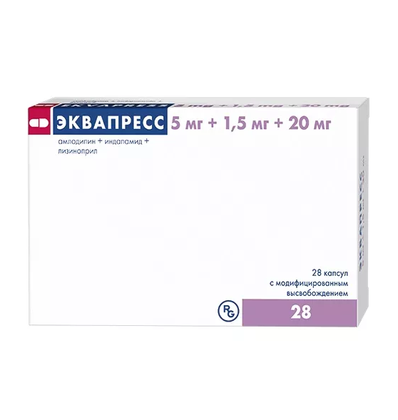 Эквапресс — фиксированная комбинация антигипертензивных компонентов амлодипина, индапамида и лизиноприла, которые обладают взаимодополняющими механизмами действия, позволяющими контролировать артериальное давление (АД), а также синергично оказывают кардиопротективное действие.