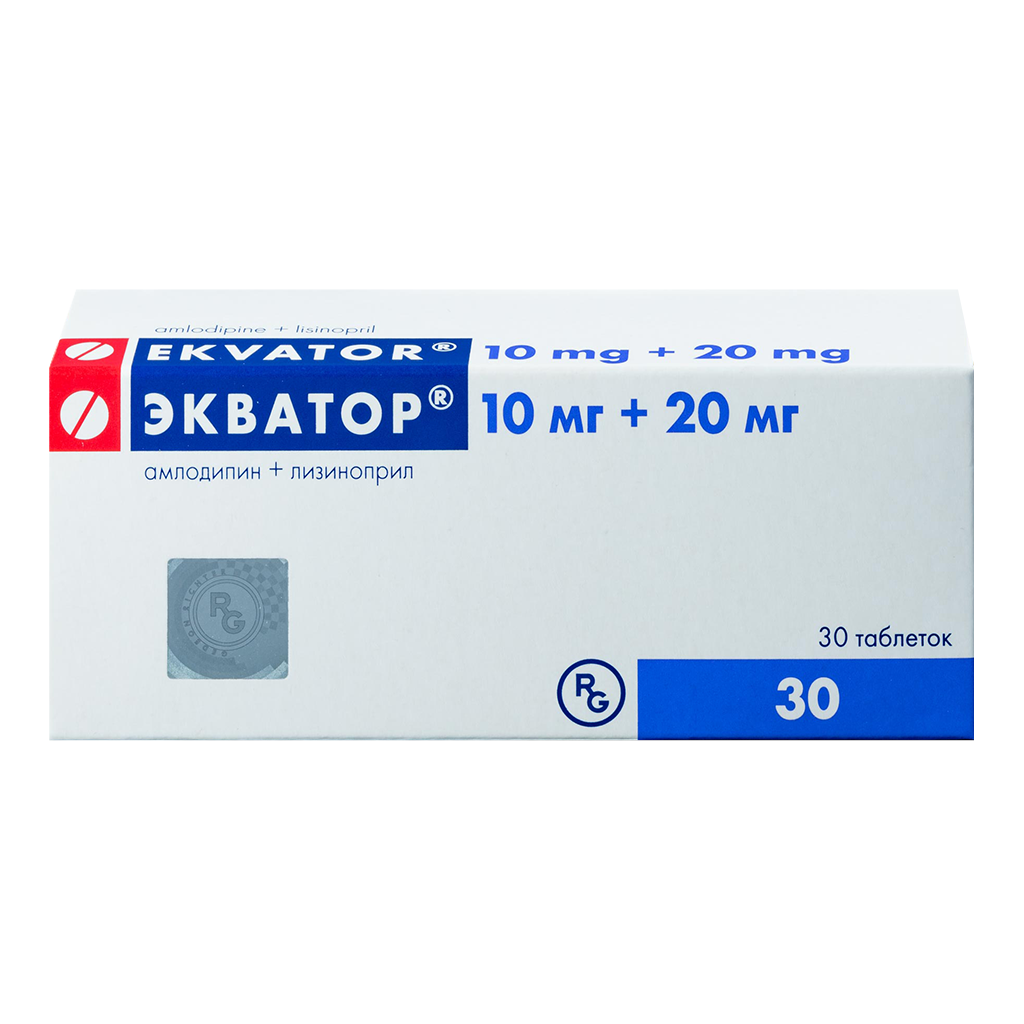 Взаимодействие между амлодипином и лизиноприлом, входящими в состав препарата Экватор®, маловероятно. AUC, время достижения и величины максимальной концентрации, периоды полувыведения не претерпевают изменений по сравнению с показателями каждого отдельно взятого действующего вещества. Приём пищи не влияет на всасываемость активных веществ. Длительная циркуляция в организме обоих действующих веществ делает возможным приём препарата 1 раз в сутки.