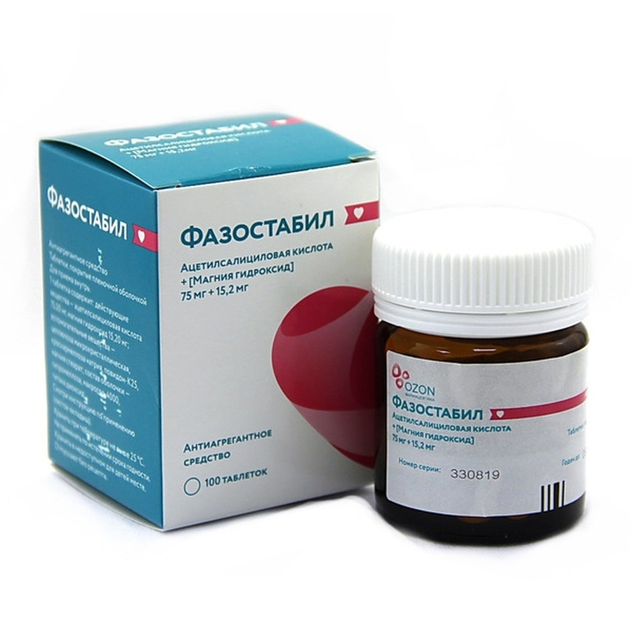 Магния гидроксид, входящий в состав препарата Фазостабил, оказывает антацидный эффект и защищает слизистую оболочку желудочно-кишечного тракта от воздействия АСК.