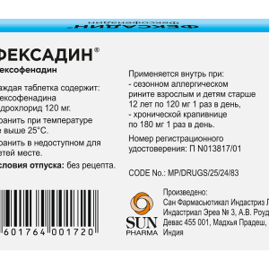 Активный ингредиент: фексофенадина гидрохлорид 120 мг или 180 мг.